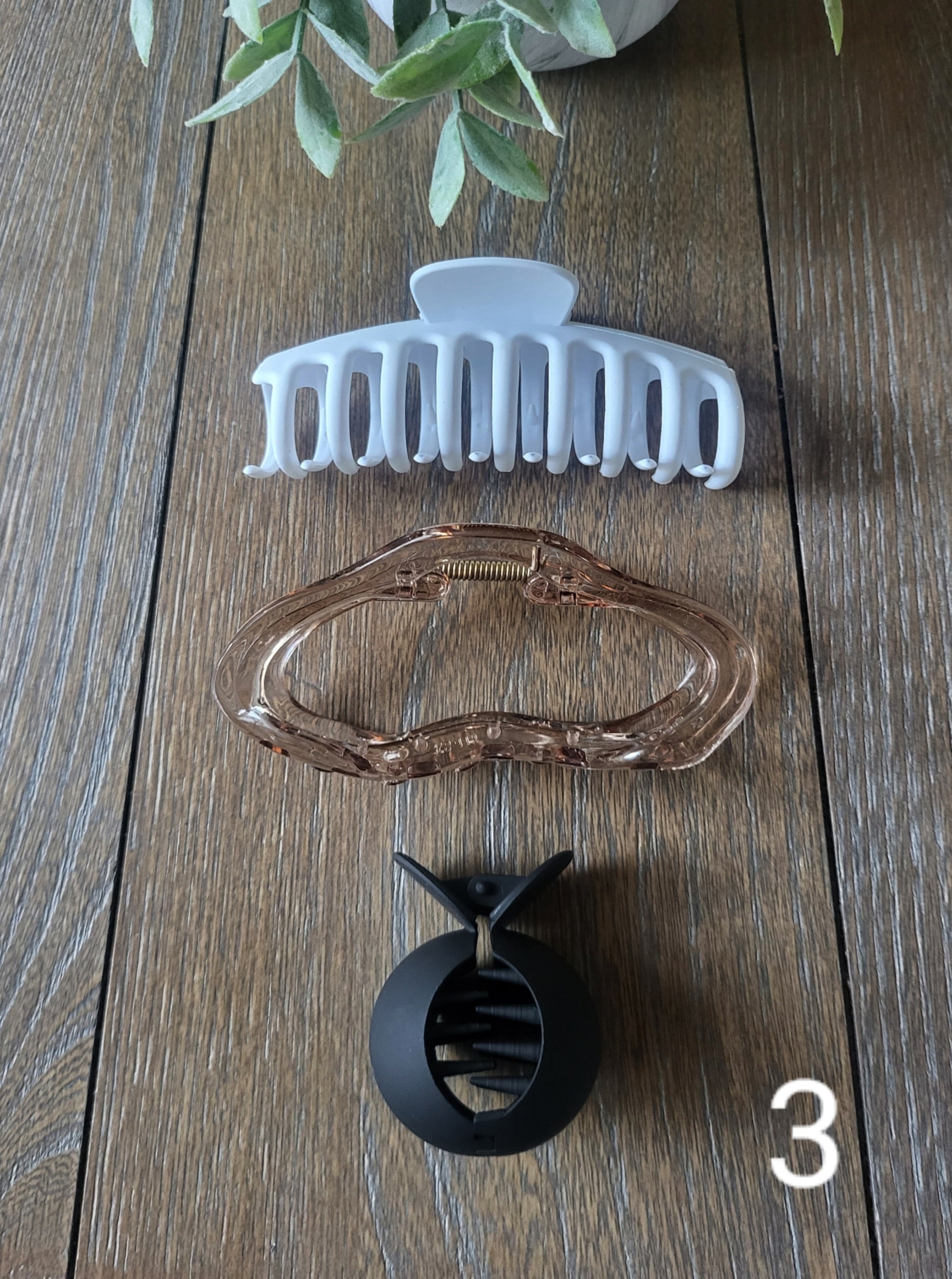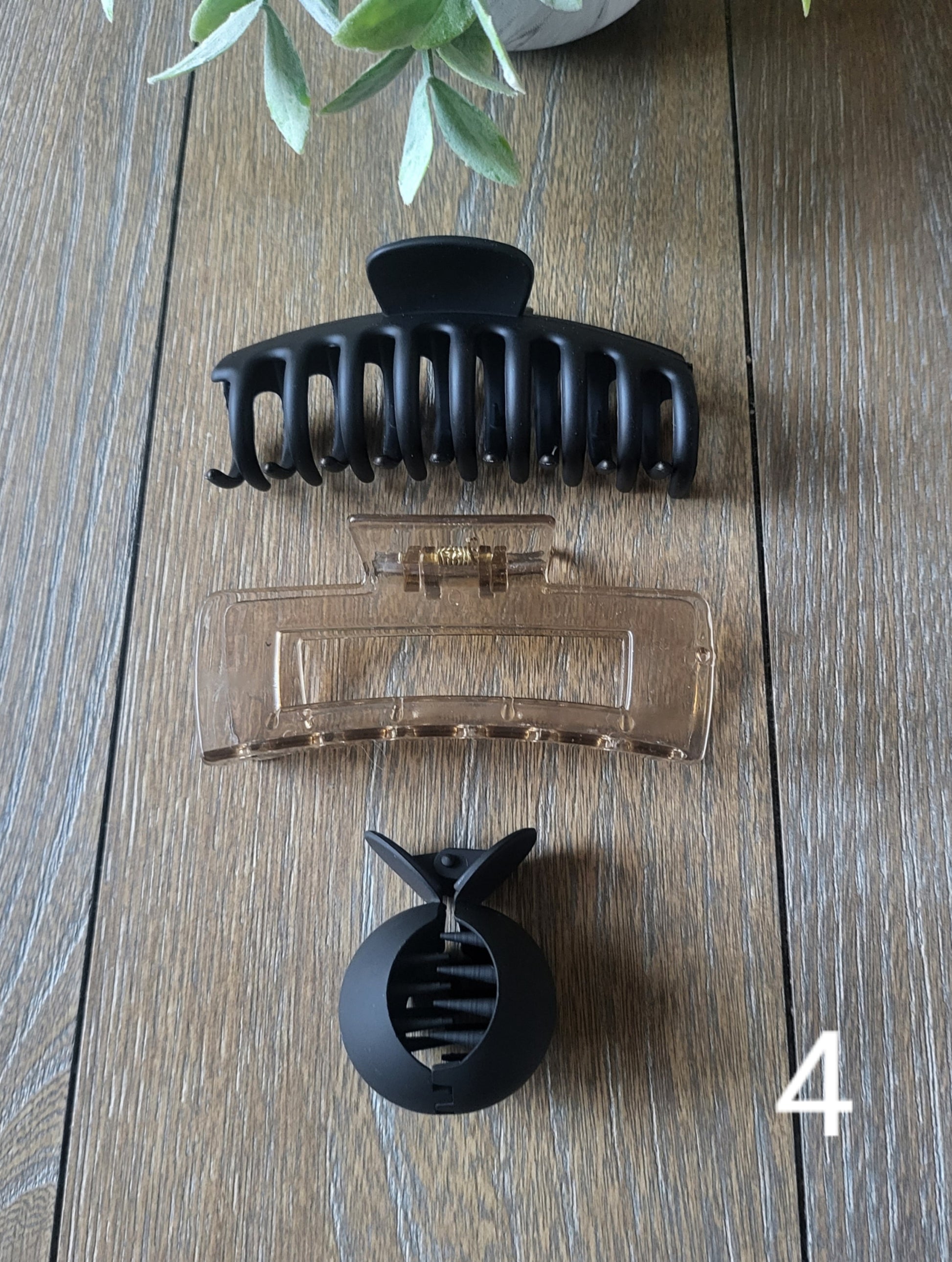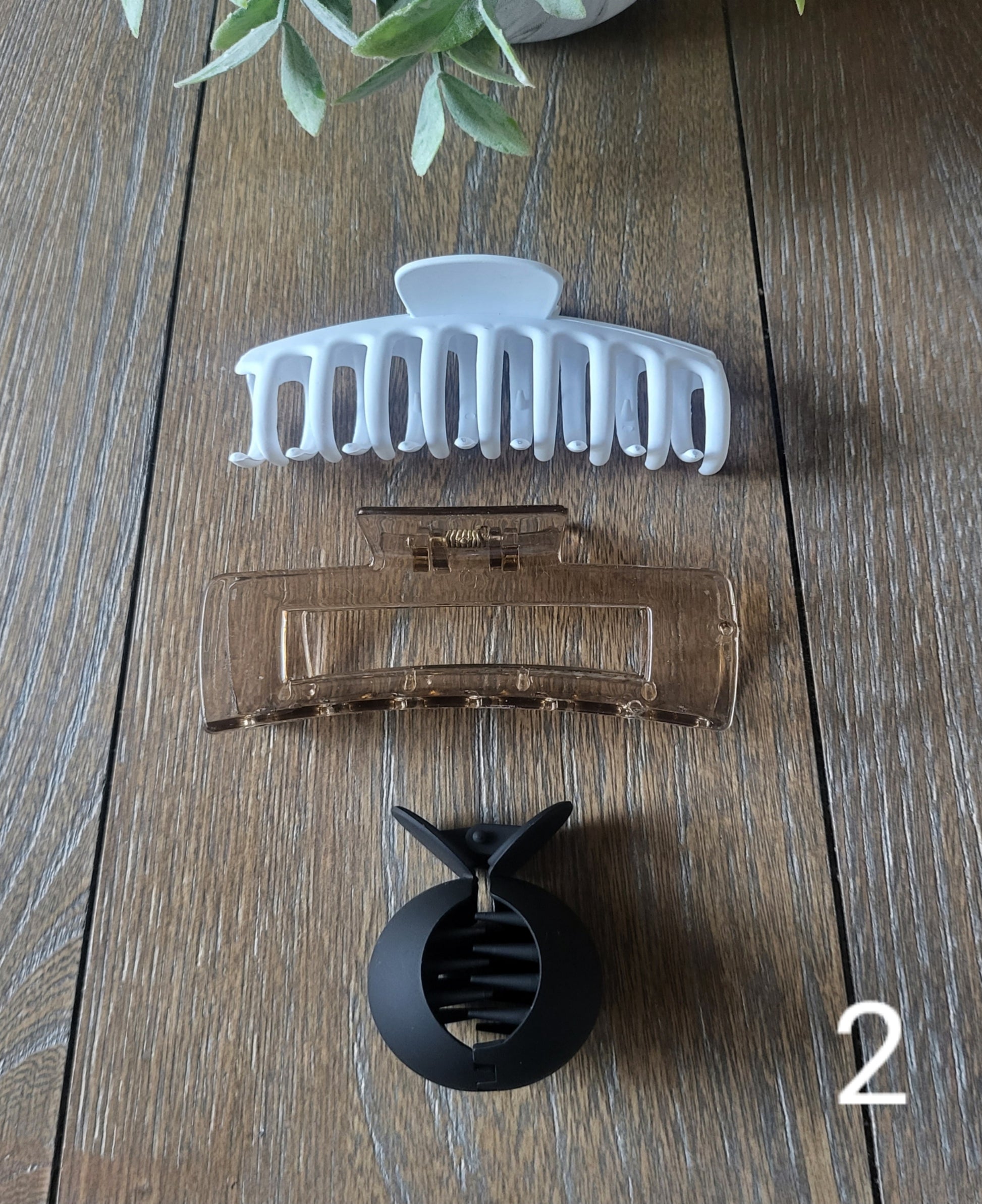 This 3 piece set of claw clips is the perfect tool for styling long hair and everyday wear. Choose from 6 different unique sets, making finding the perfect clip for any occasion a breeze. Durable and stylish, these clips make a great Christmas stocking stuffer.