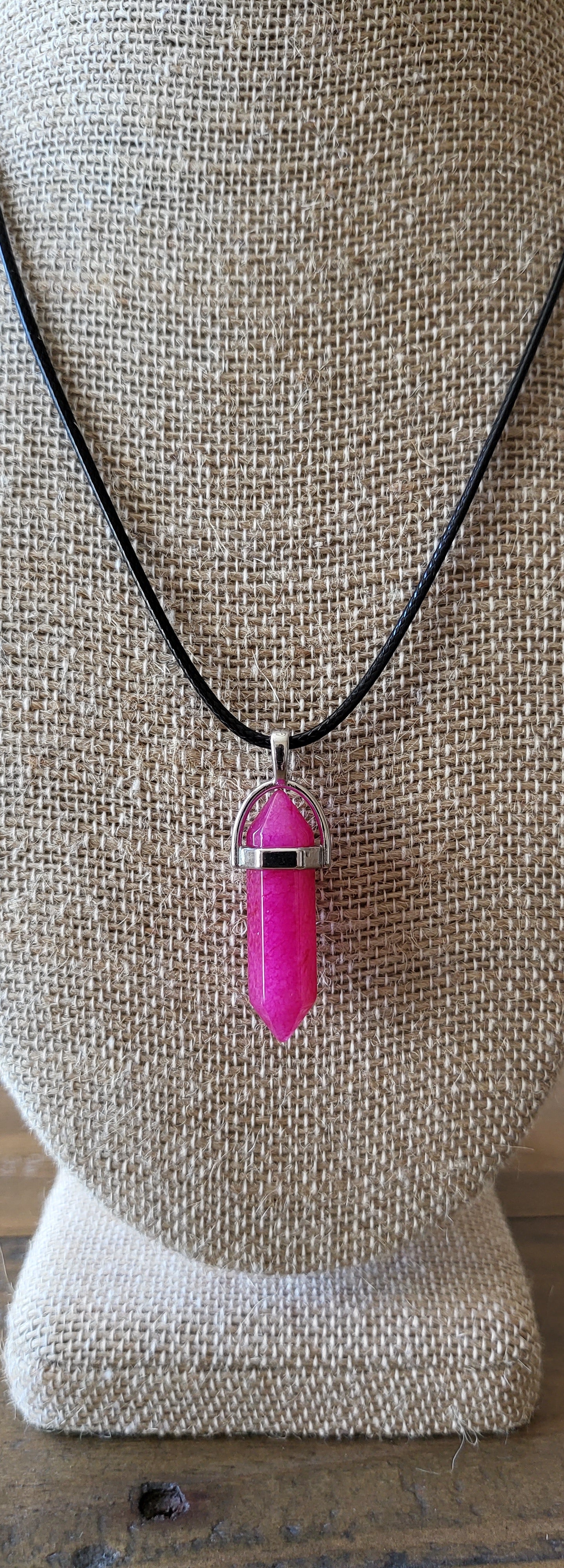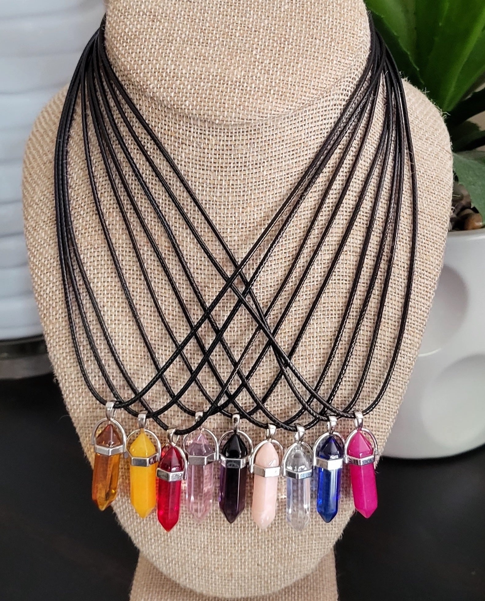 What's your favorite crystal color? Look no further! Beautiful stone necklaces that stand out on its own with its soft black rope. Wear this Beauties alone or stack them. Unisex.