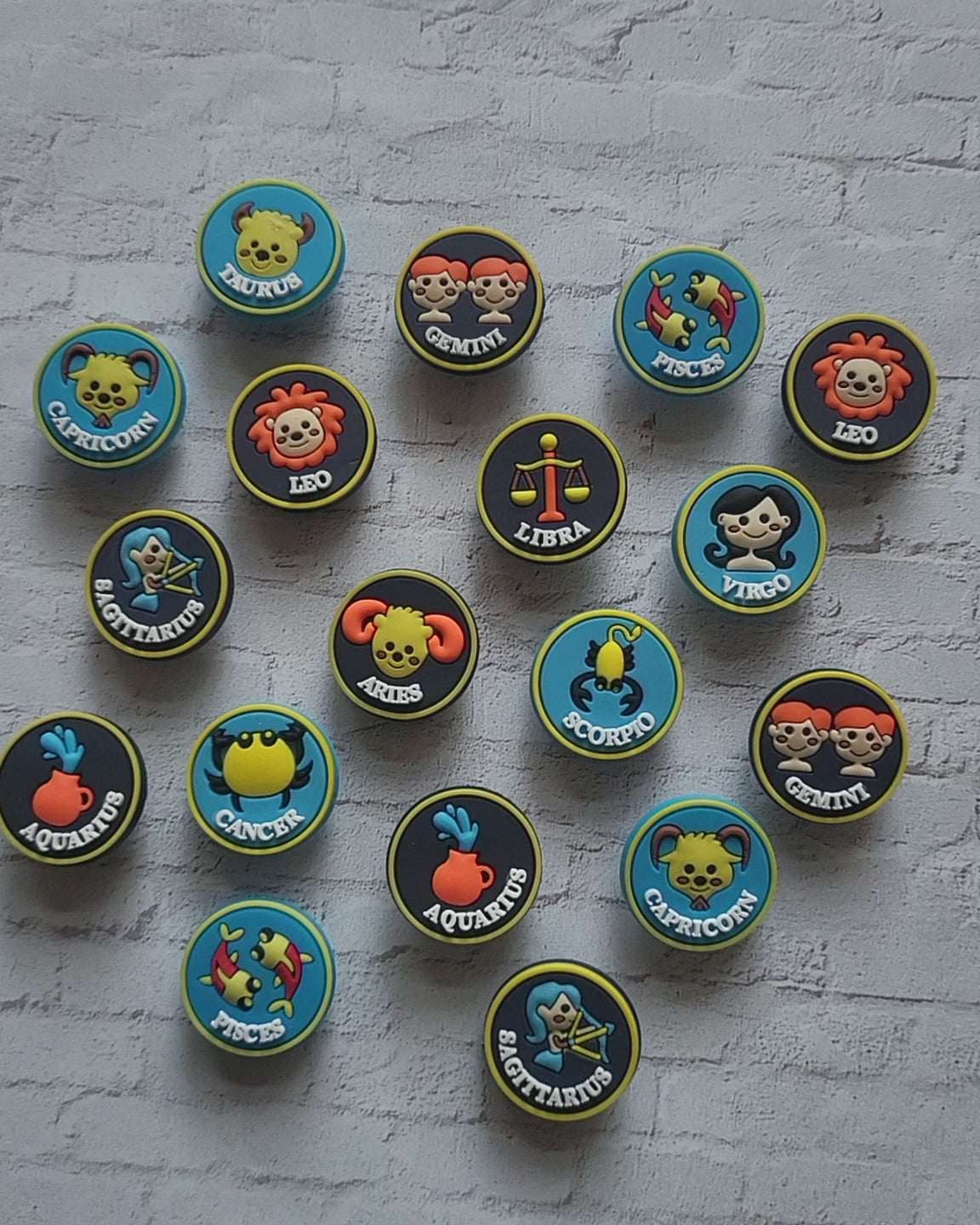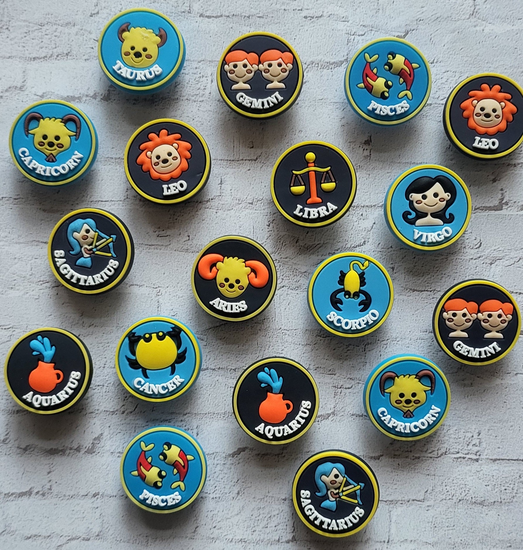 Show off your personality with our fun horoscope shoe charms! These charms feature the star sign for each of the 12 zodiac signs, so you can easily display your unique style. Add a special touch to your shoes and let your zodiac sign shine!