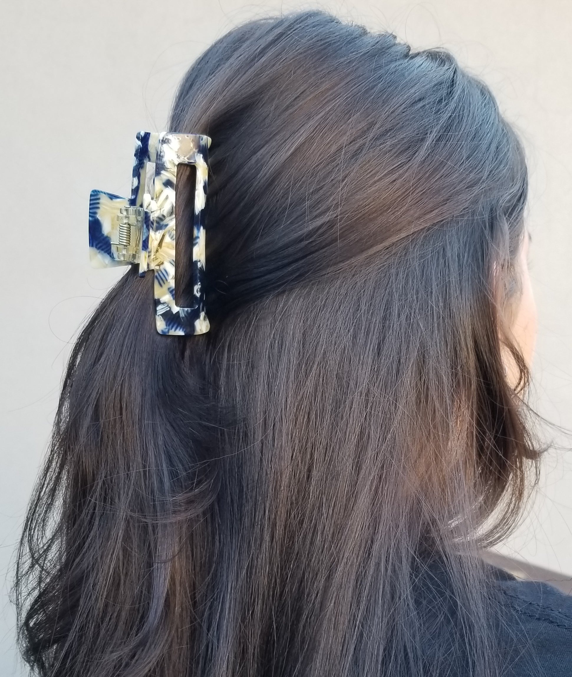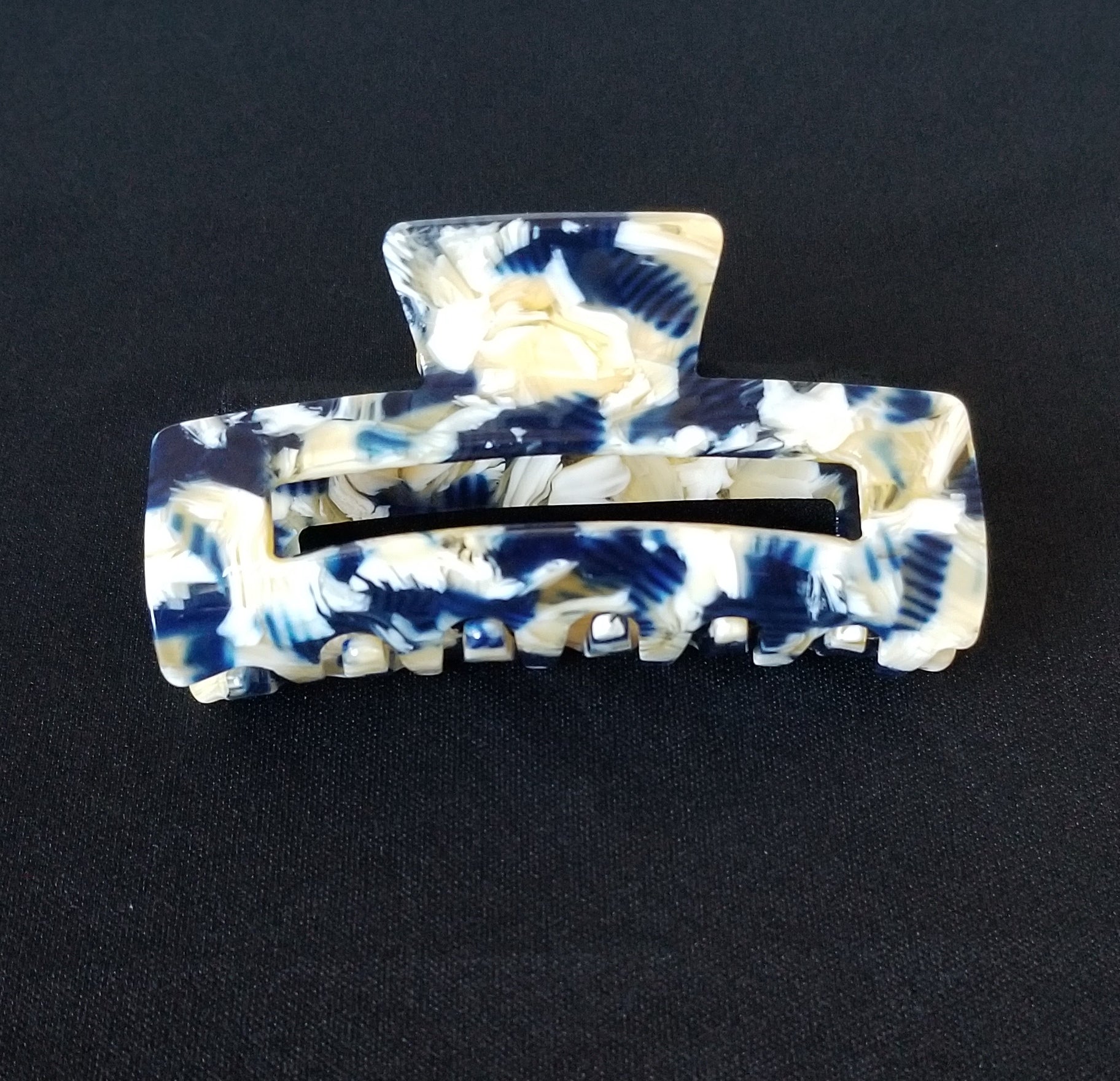 This Large 3.1" Hollow Celluloid Acetate Claw Hair Clip combines quality and style. The 3.5 inch clip is made of acetate celluloid, making it strong and stylish in beautiful marble tortoise colors. Get salon-quality hold with every use.