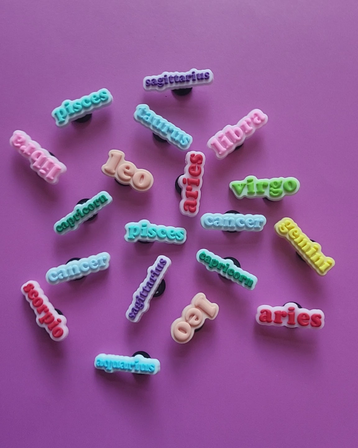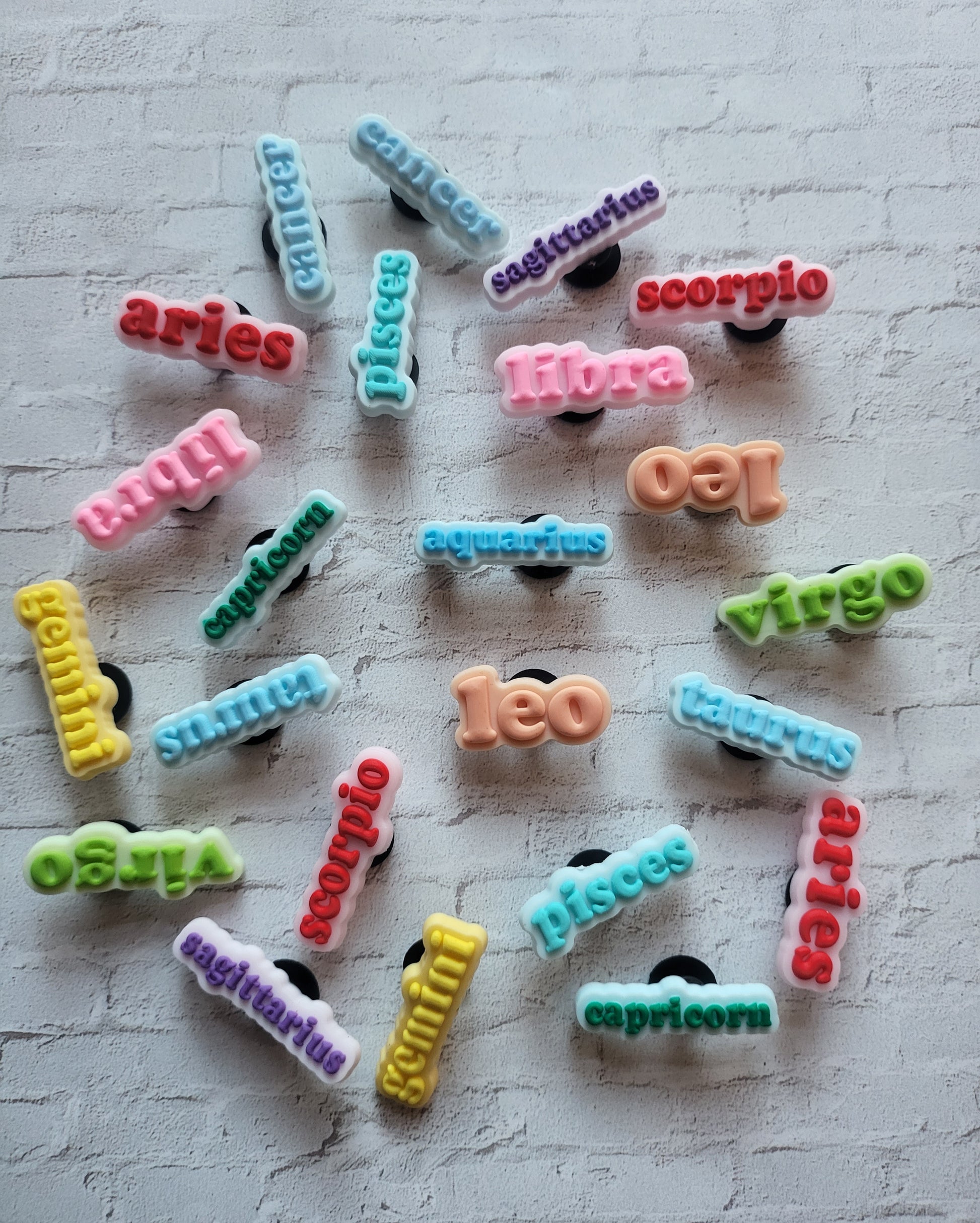 Show off your personality with our fun horoscope shoe charms! These charms feature the star sign for each of the 12 zodiac signs, so you can easily display your unique style. Add a special touch to your shoes and let your zodiac sign shine!