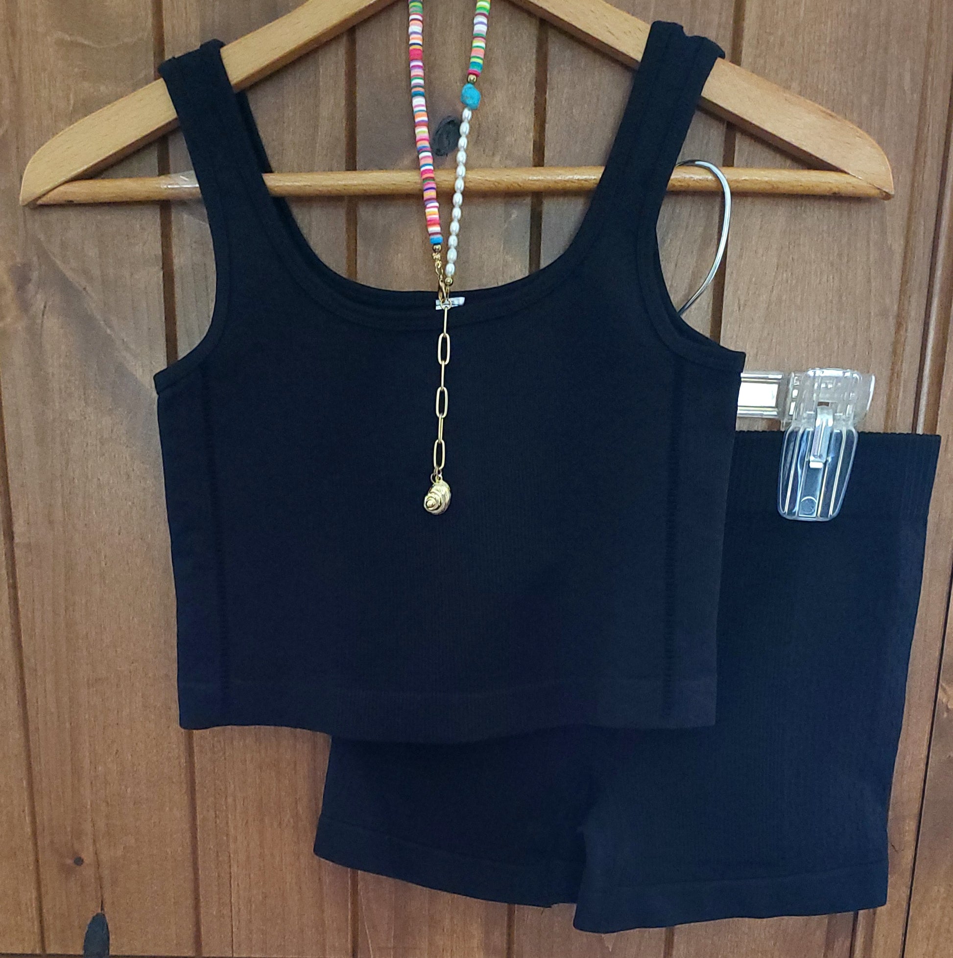 Look and feel your best in this comfortable, seamless crop tank bralette style and short moisture wicking set! Lightweight fabric will keep you cool and comfortable all day. Perfect for workouts or just for lounging around.
