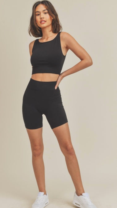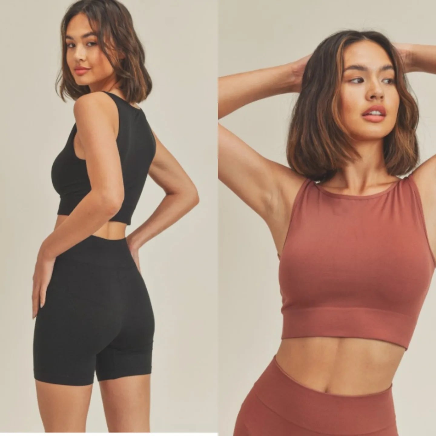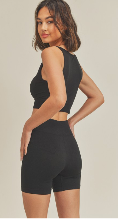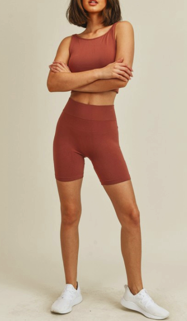 Stay comfortable all day in our Seamless Crop Top & Biker Short Set. Crafted with buttery soft fabric, this everyday outfit is perfect for lounging or weekend coffee. Enjoy the flattering fit and feel confident as a day or evening outfit.