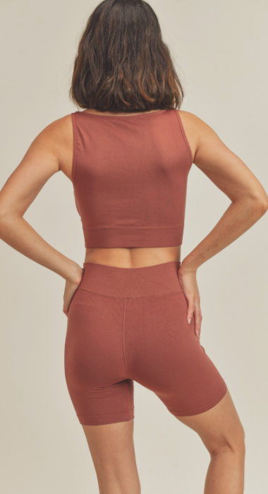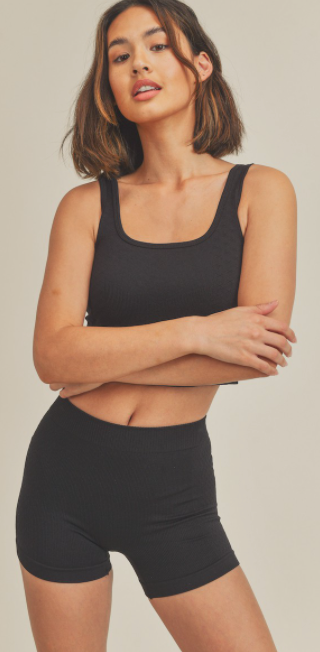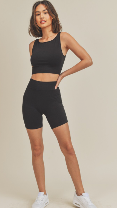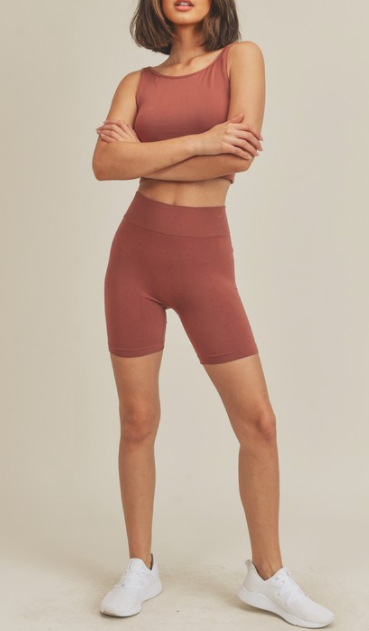 Seamless crop top and biker shorts have premier fabrication to move freely with your body. It'll feel like nothing is even there. Feel dry and supported for your active lifestyle with this fabulous set!