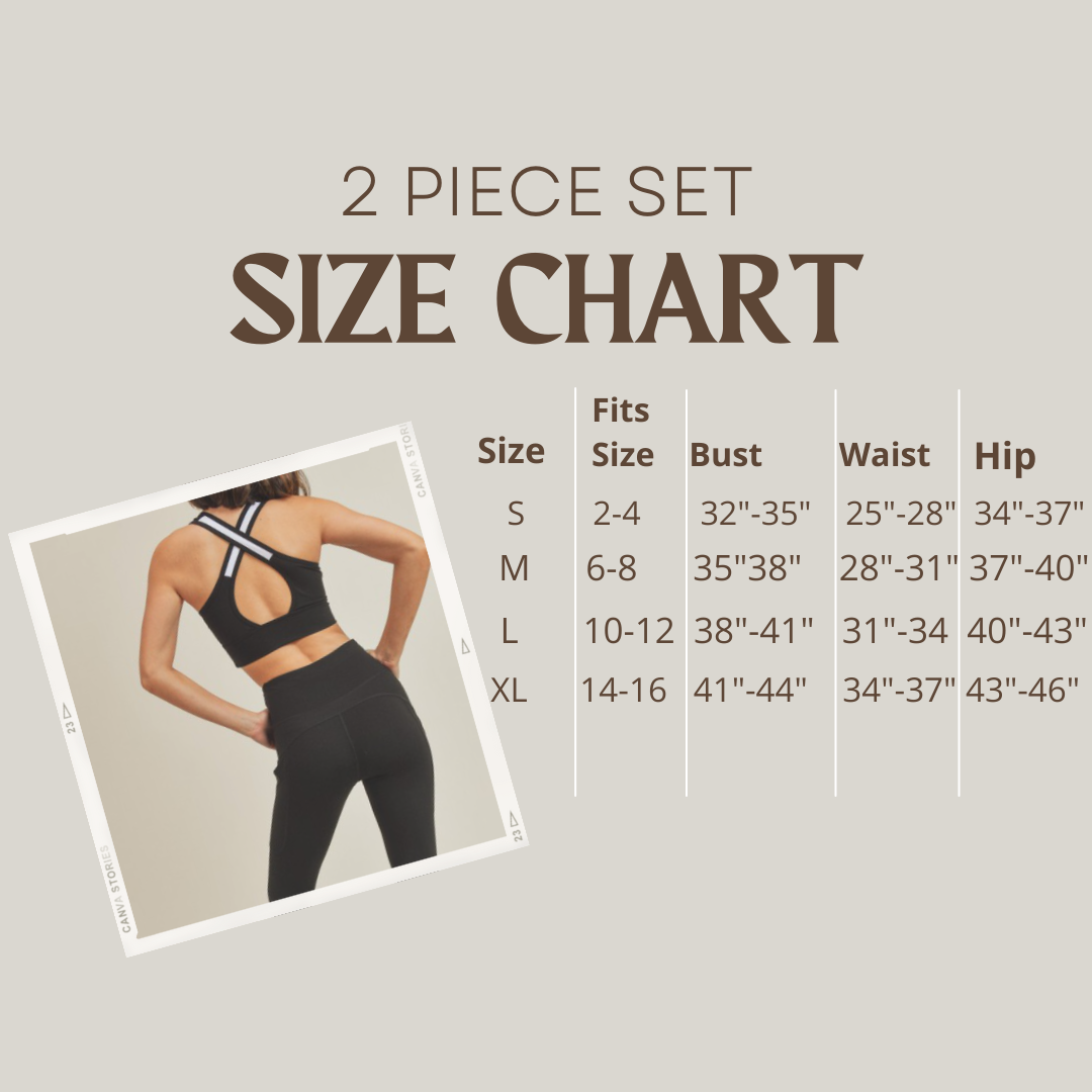 Elevate your look with this timeless Criss Cross Sports Bra/Tank & Legging Set. Unparallel high stretch material that will endure intense workouts and give you utmost comfort for your everyday wear. Change it up with a zip up jacket or hoodie.