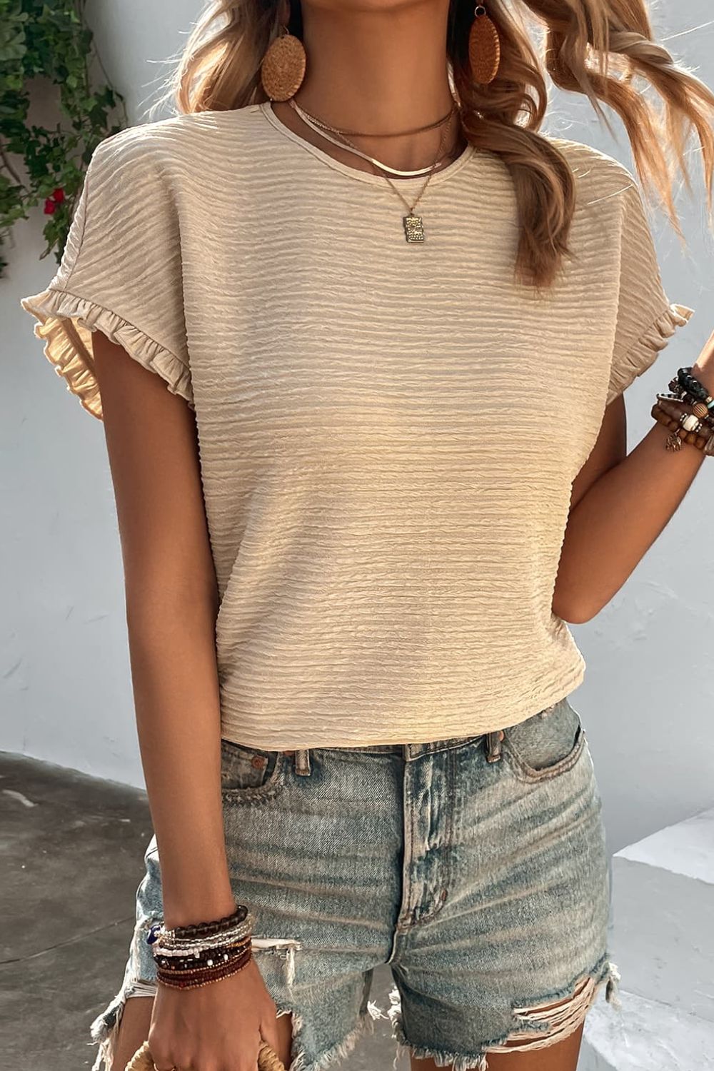 Experience casual chic with this textured round neck short sleeve top - the perfect combination of comfort and style. Its soft, lightweight fabric feels great against your skin and will have you looking effortlessly stylish. For comfort and class, you can't go wrong with this top!