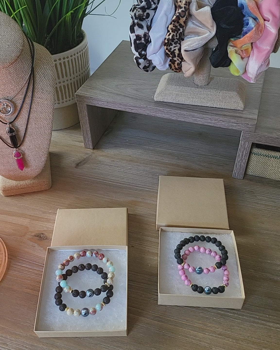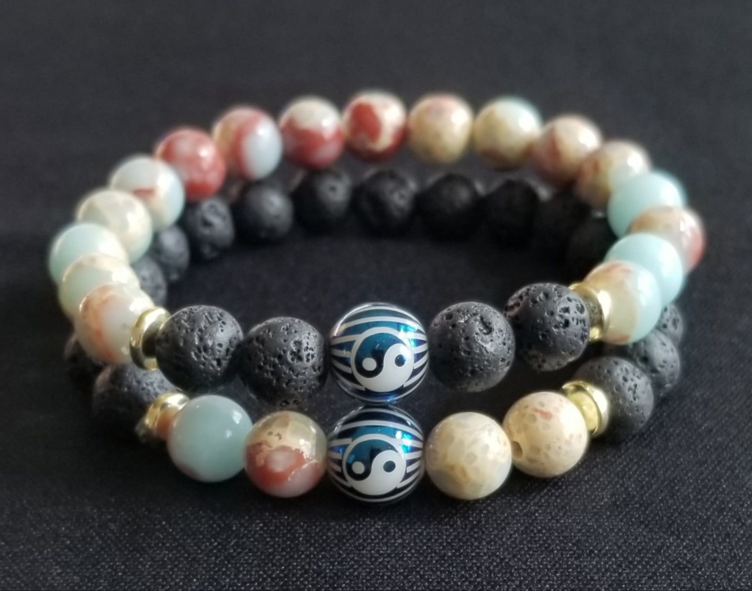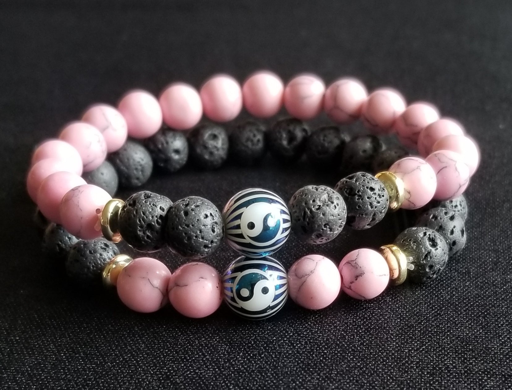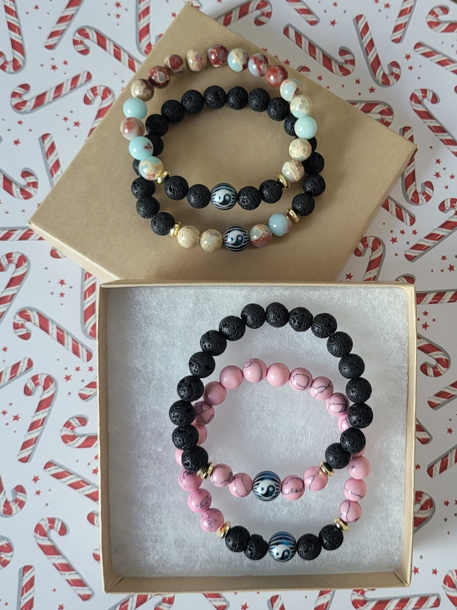 Pink, black, aqua, and... love these cuties! Take your pick of your favorite yin and yang bracelet combo set. Choose pink or aqua with a stand out black matching bracelet. Stack the combo or share the second piece with your favorite person/friend.
